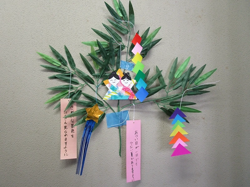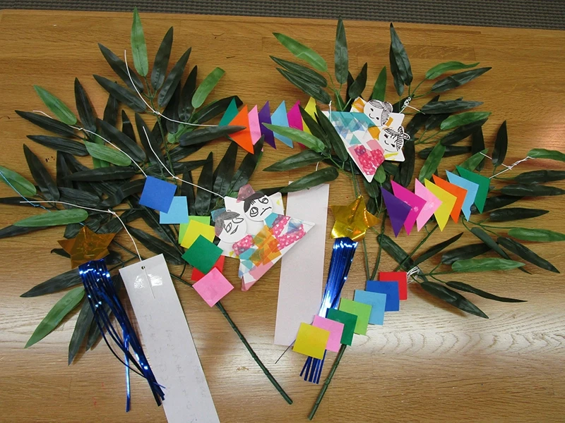 6月のつくってあそぼうは、7月7日のたなばた飾りをつくりました。七夕は、年に一度、織姫さまと彦星さまが会える日とされています。これからも、昔から伝わる伝統行事は大切にしたいですね。