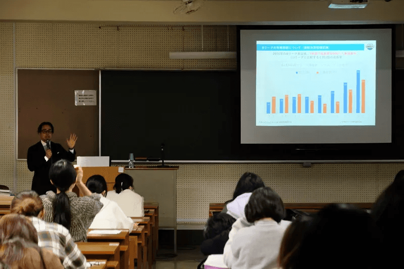 日本の男子プロバスケットボールリーグであるB.LEAGUEの現状や京都とバスケットボールの繋がり、そして京都ハンナリーズの行っている地域連携についてお話しいただきました。