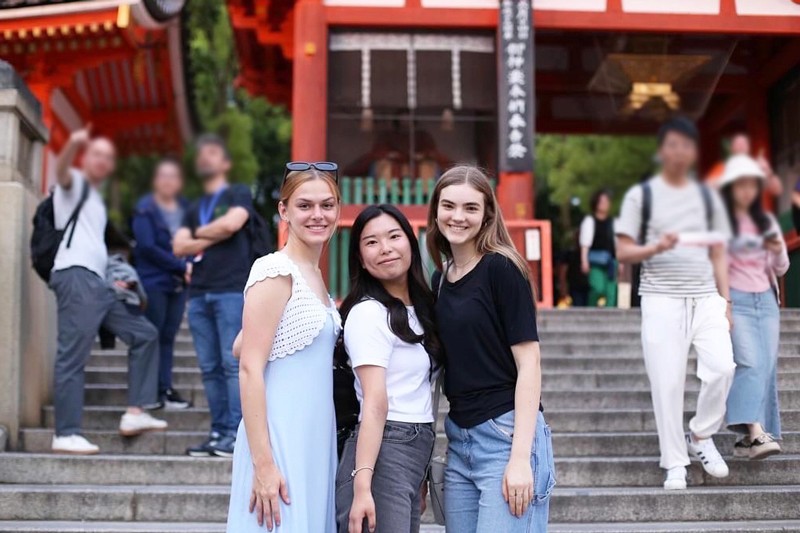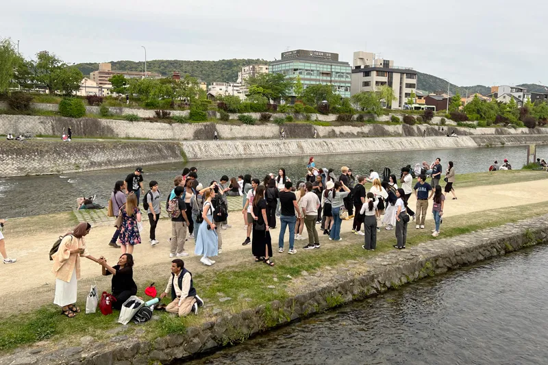 テキサス大学の学生とは5月18日(土)、20日(月)に交流を行いました。18日は、本学学生が錦市場や八坂神社にアテンド。一緒に京街歩きを楽しみました。