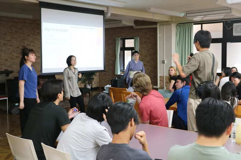 20日は京都キャンパスにも来校いただき、本学の2年生が英語で、平安女学院の歴史、国際観光学部での学生生活についてプレゼンテーションをし、その後、明治館を見学いただきました。