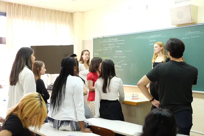 エディ・カフェで昼食を取った後には、アメリカや日本におけるジェンダーギャップなどについてディスカッション。アメリカと日本の違いについて話し合い、相互の文化への理解を深めました。