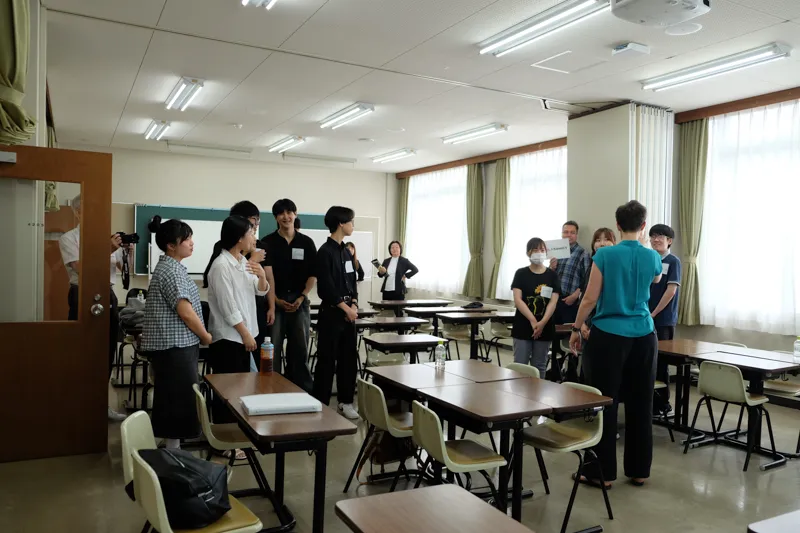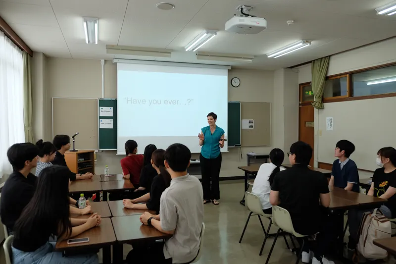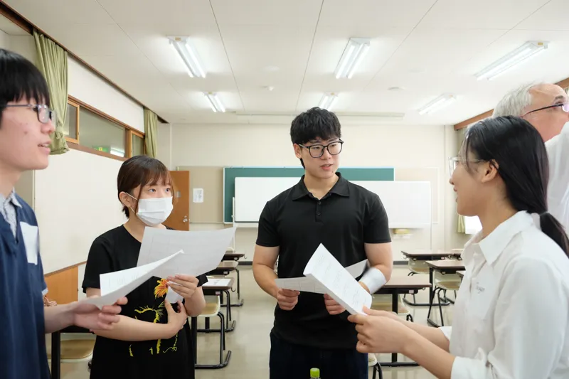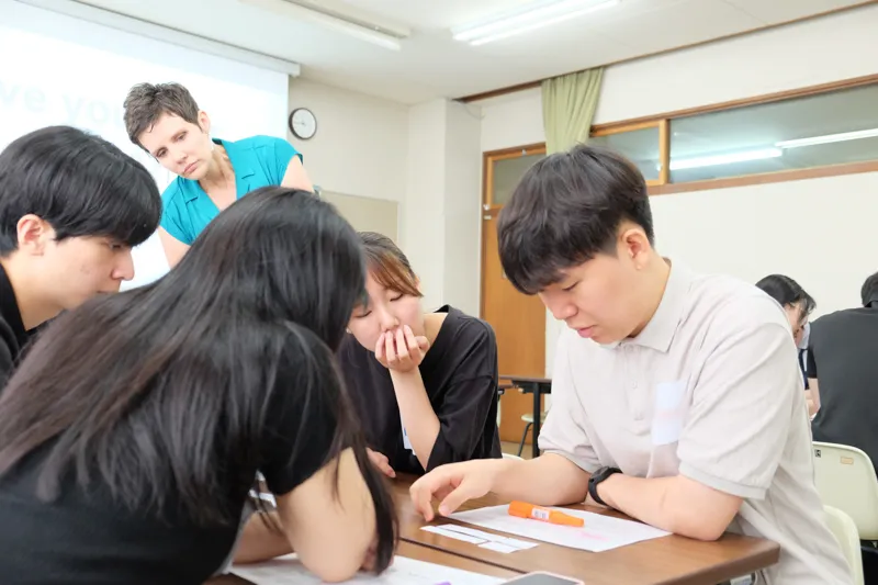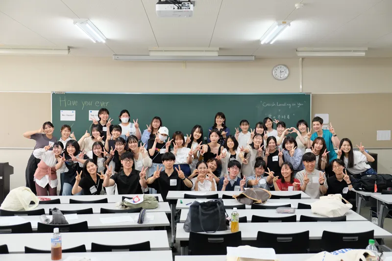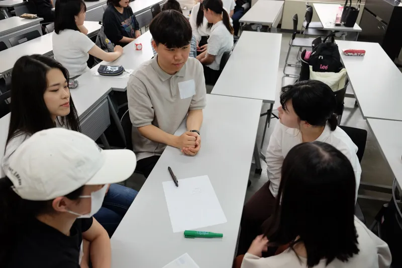 6/27(木)、韓国の東部の港湾都市・ ポハン(浦項)市にあるハンドン・グローバル大学の学生9人が英語教育活動のために大阪高槻キャンパスに来校。子ども教育学部の学生と一緒に授業に参加するなどの交流を行いました。