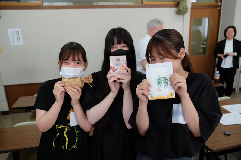 最後には、韓国のお土産をプレゼントしてもらったり、みんなで写真を撮影し合ったり、連絡を交換し合ったりと、短い間でしたが仲を深めている様子も見受けられ、相互にとって実りのある交流会となりました。