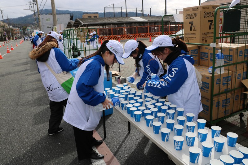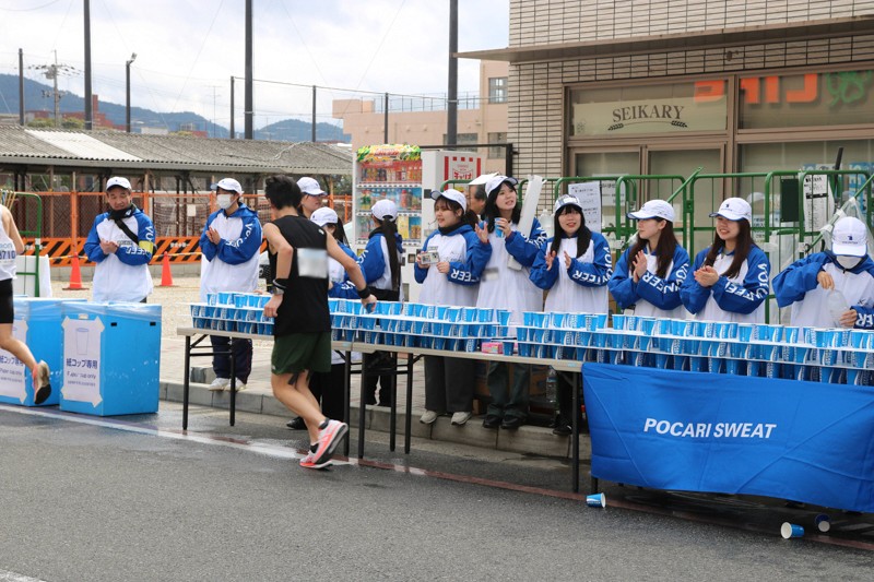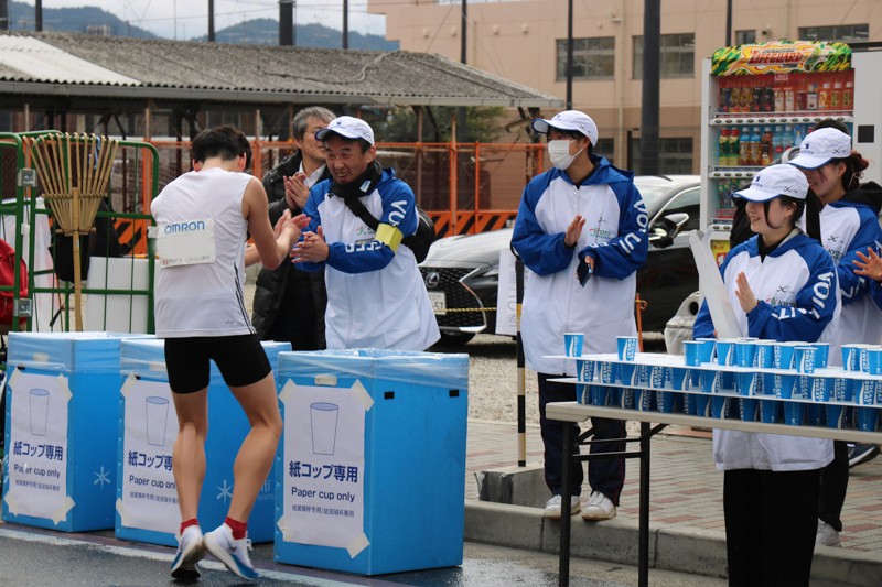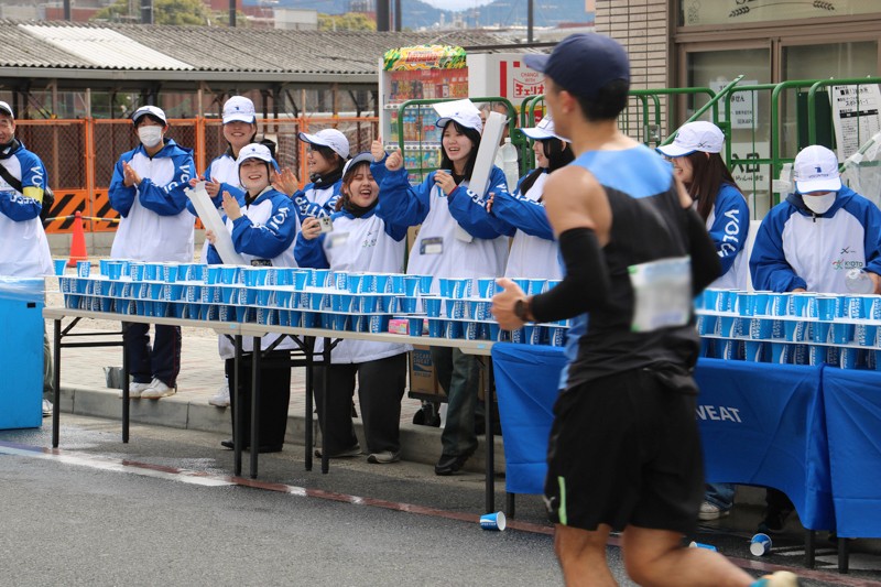 春の陽気の中での開催となった18日(日)は、コース終盤に設けられた第13給水所の運営に参加。ランナーの皆さんの給水をサポートしつつ、沿道から声援を送りました。
