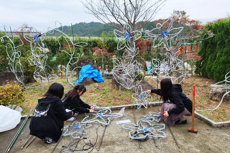 11月16日(土)に亀岡市「京都丹波 KAMEOKA 夢ナリエ」、17日(日)に綾部市「綾部夢(ドリム)ライト」に、イルミネーション委員会の学生が設営のお手伝いに行きました。