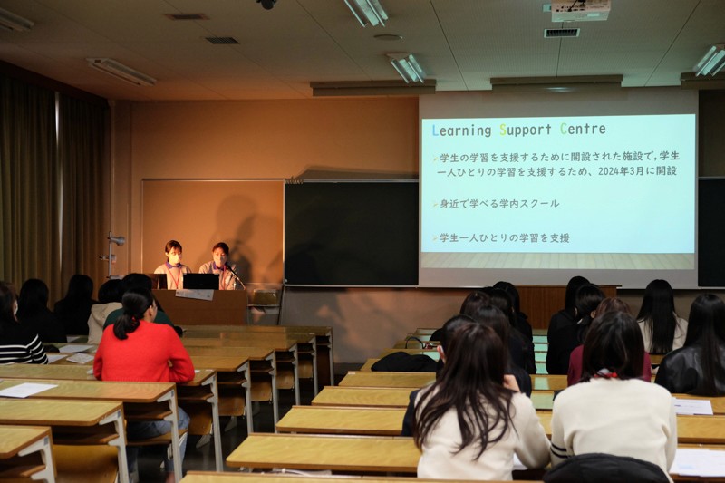 4月の入学に向けて、各学部のコースや留学制度などについて説明したほか、入学前の課題についても告知しました。