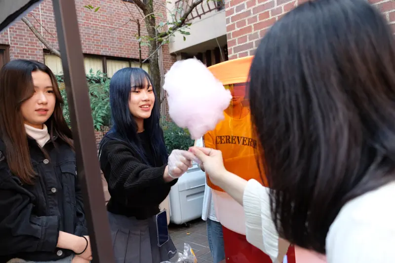 学生たちは、ポップコーンやたこせん、カステラなどの模擬店を出店。