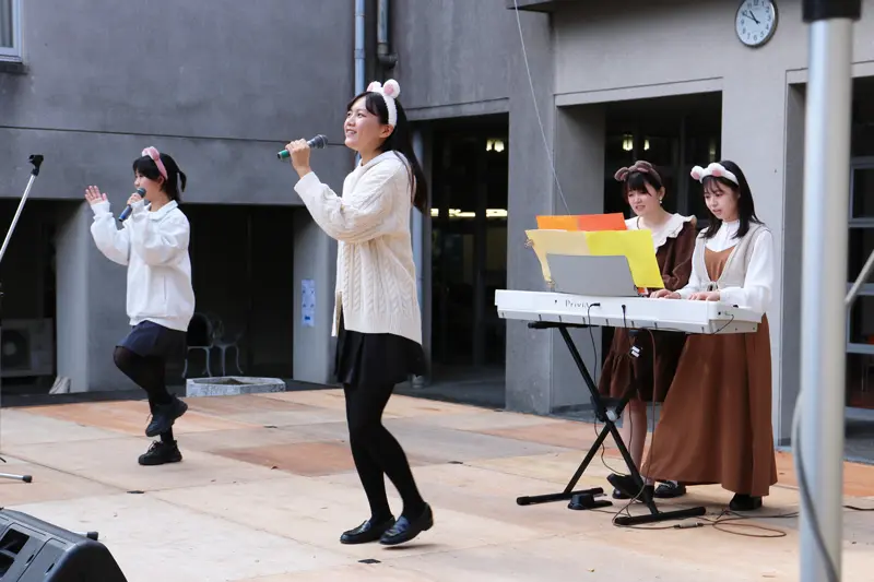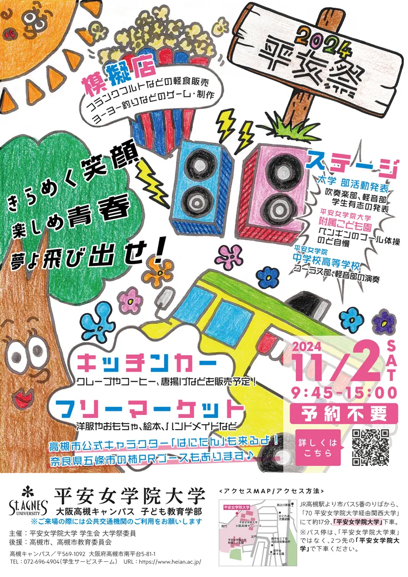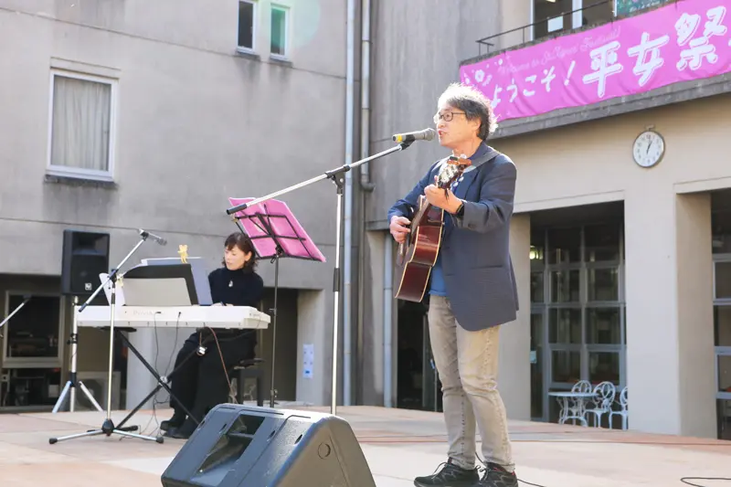 ステージでは平安女学院大学附属こども園の園児・保護者による発表、平安女学院中学校高等学校の部活発表、平安女学院大学の部活や有志の発表を行います。