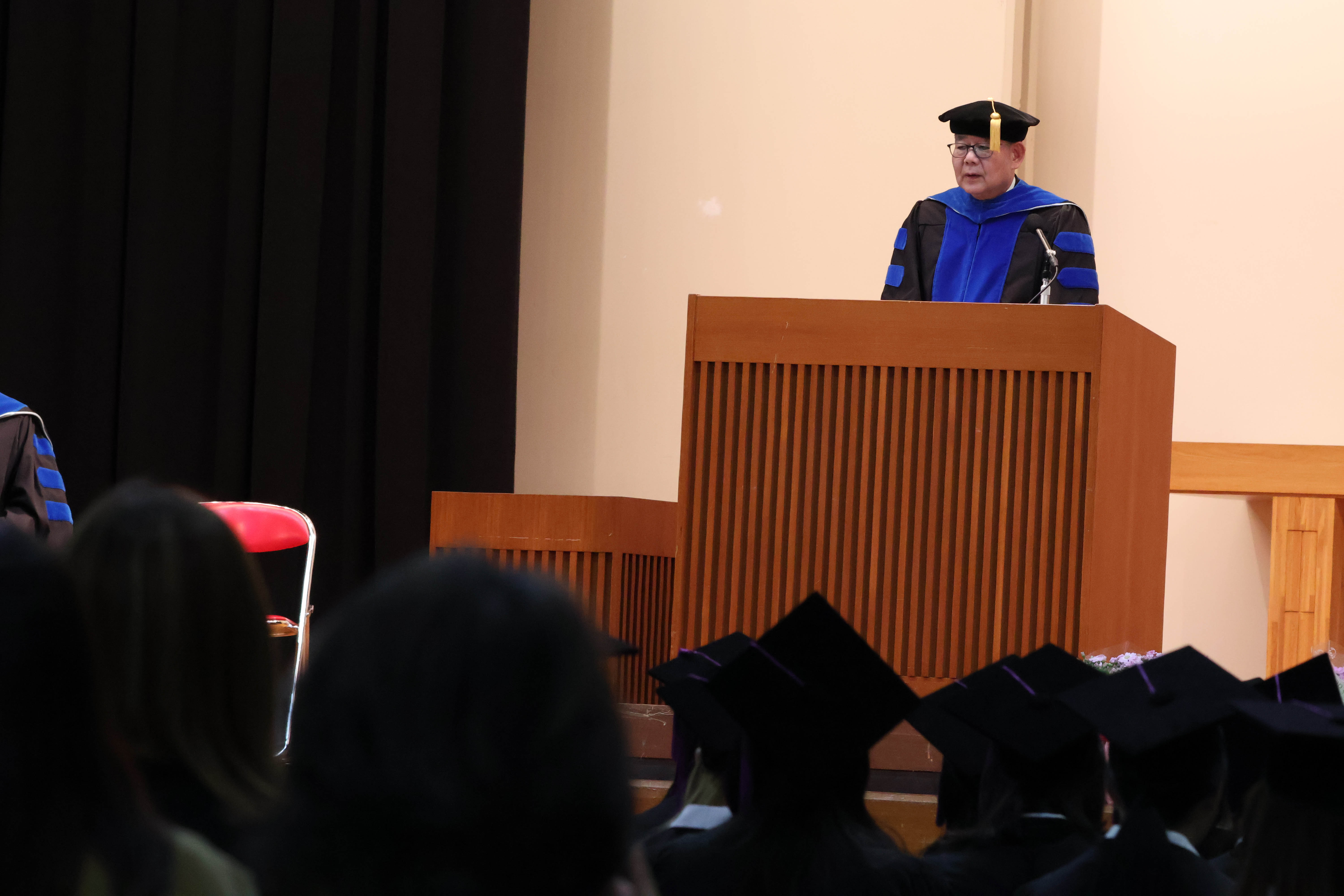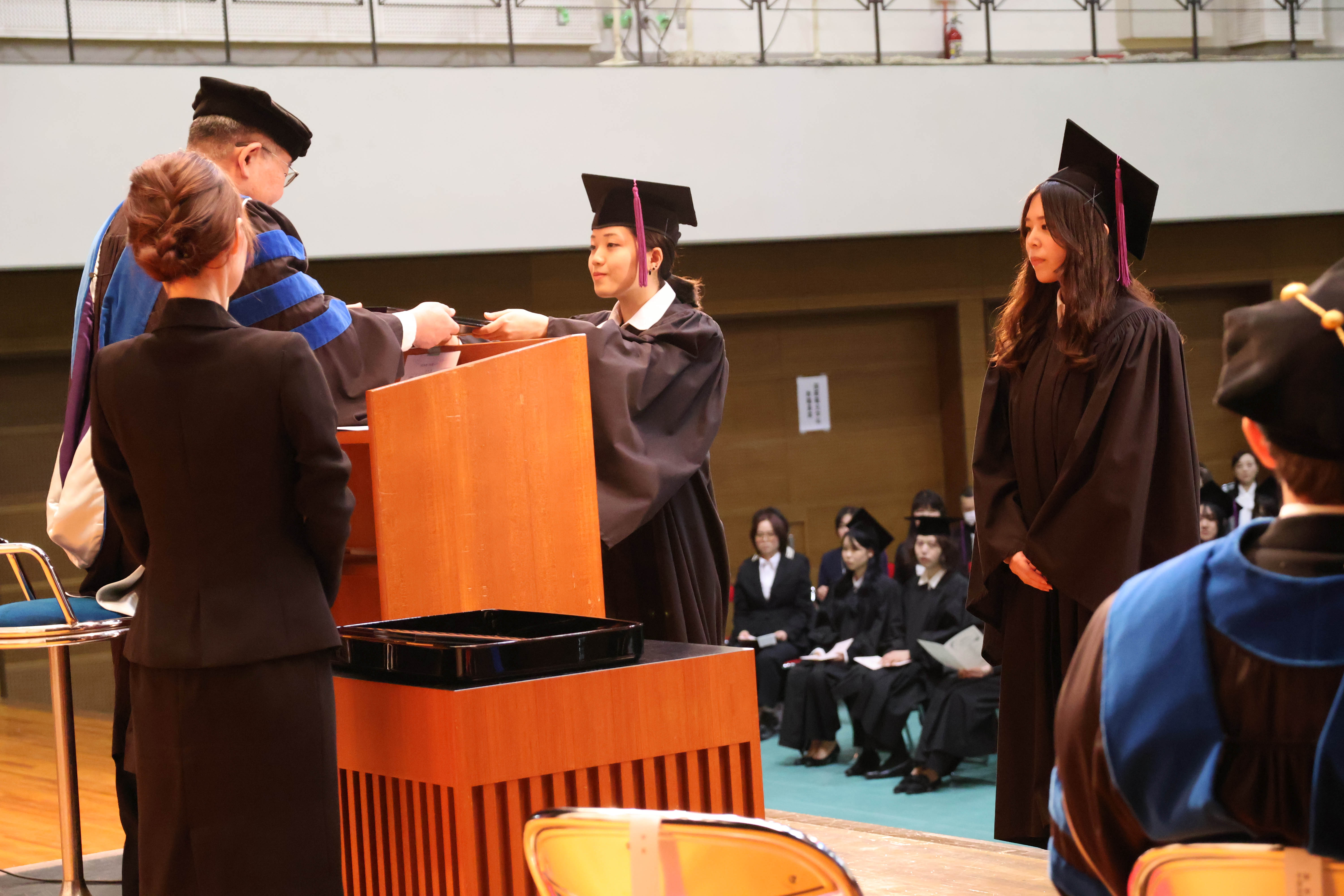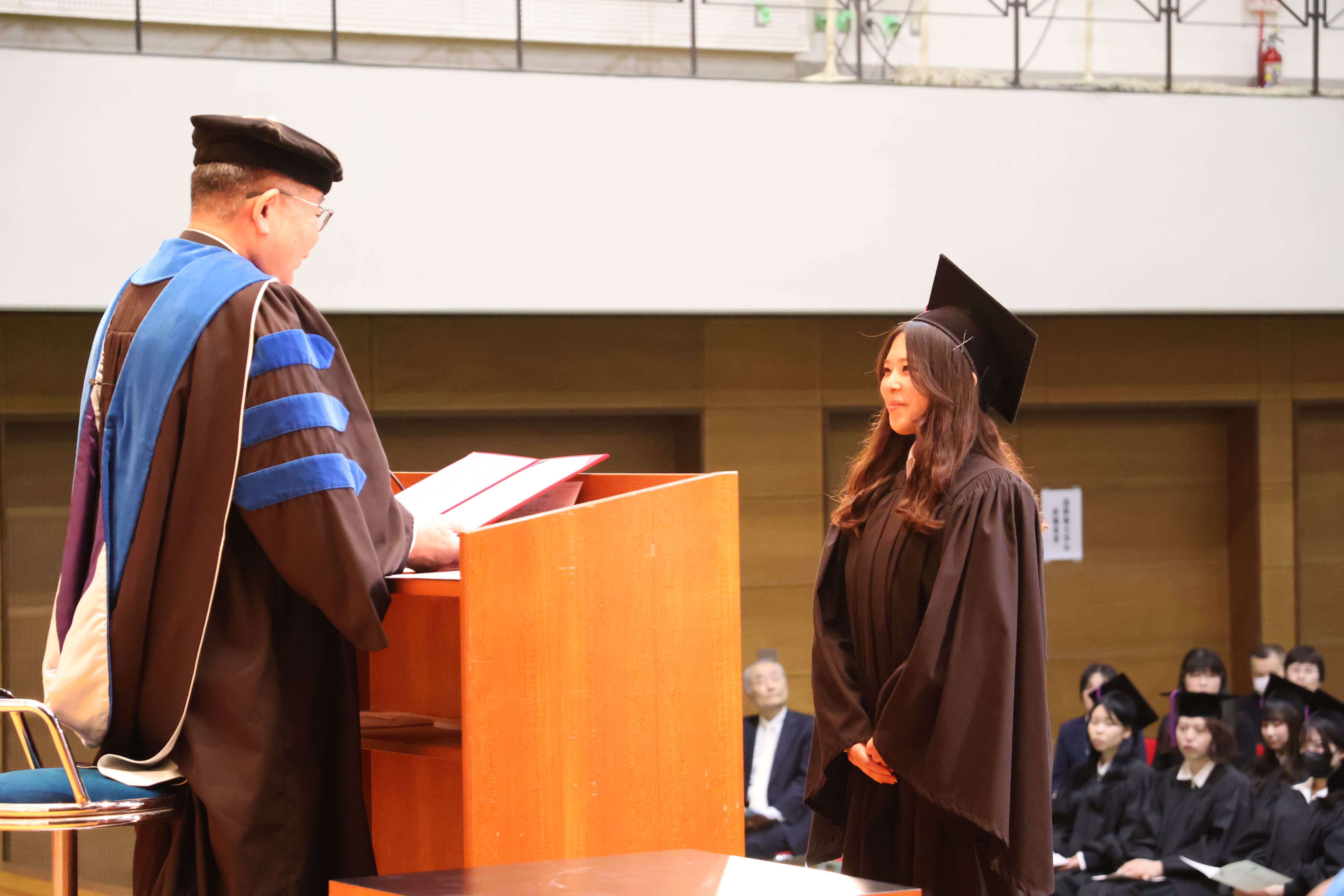 式では、卒業証書の授与に続き、成績優秀者への「学長賞」、および課外活動等で顕著な功績を収めた学生への「エディ賞」などの授与が行われました。