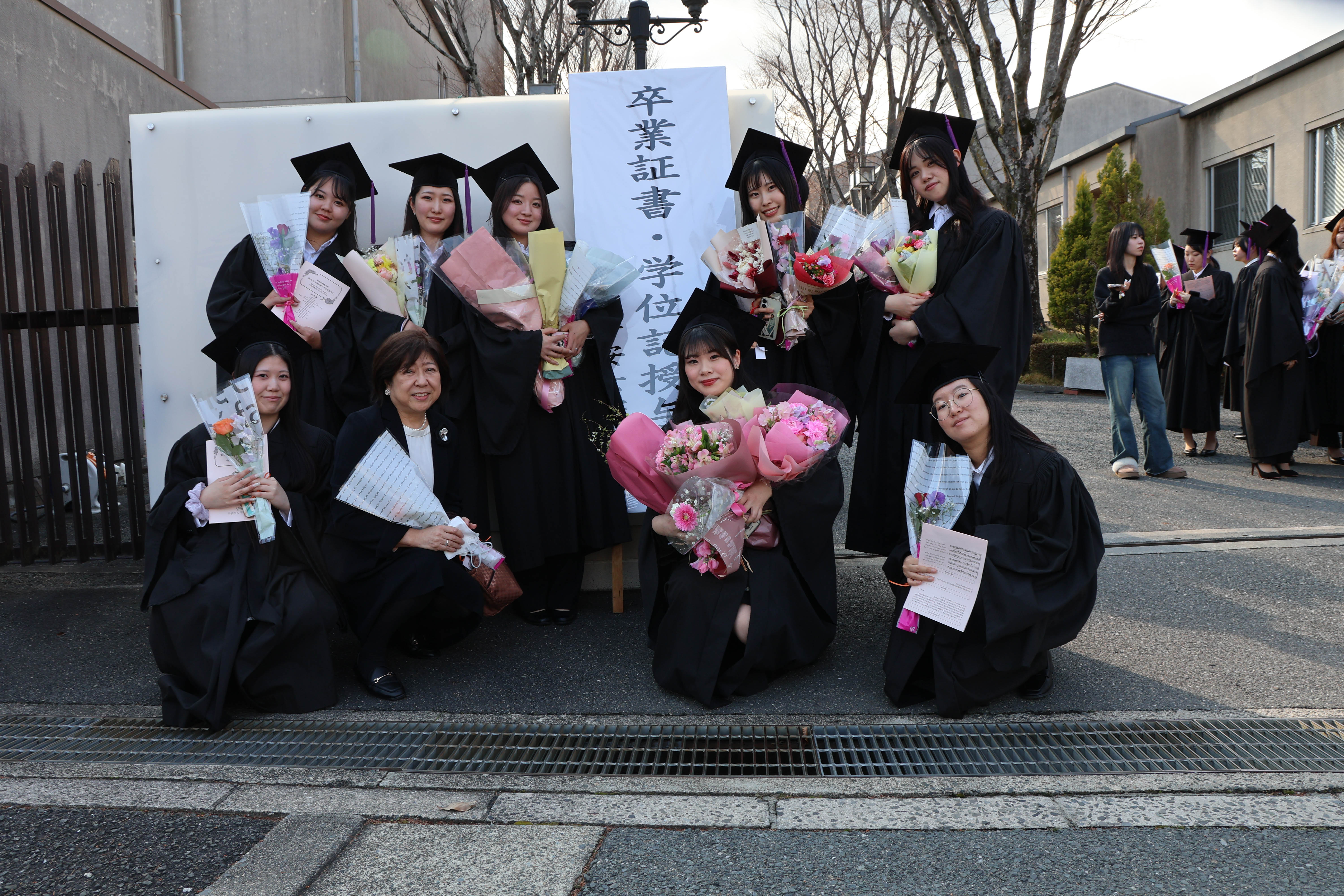 式典終了後は、春の柔らかな日差しの中、友人やご家族、恩師やゼミの仲間たちと記念撮影を行う姿がキャンパス各所で見られ、キャンパスは終日、卒業生の門出を祝う明るい雰囲気に包まれました。