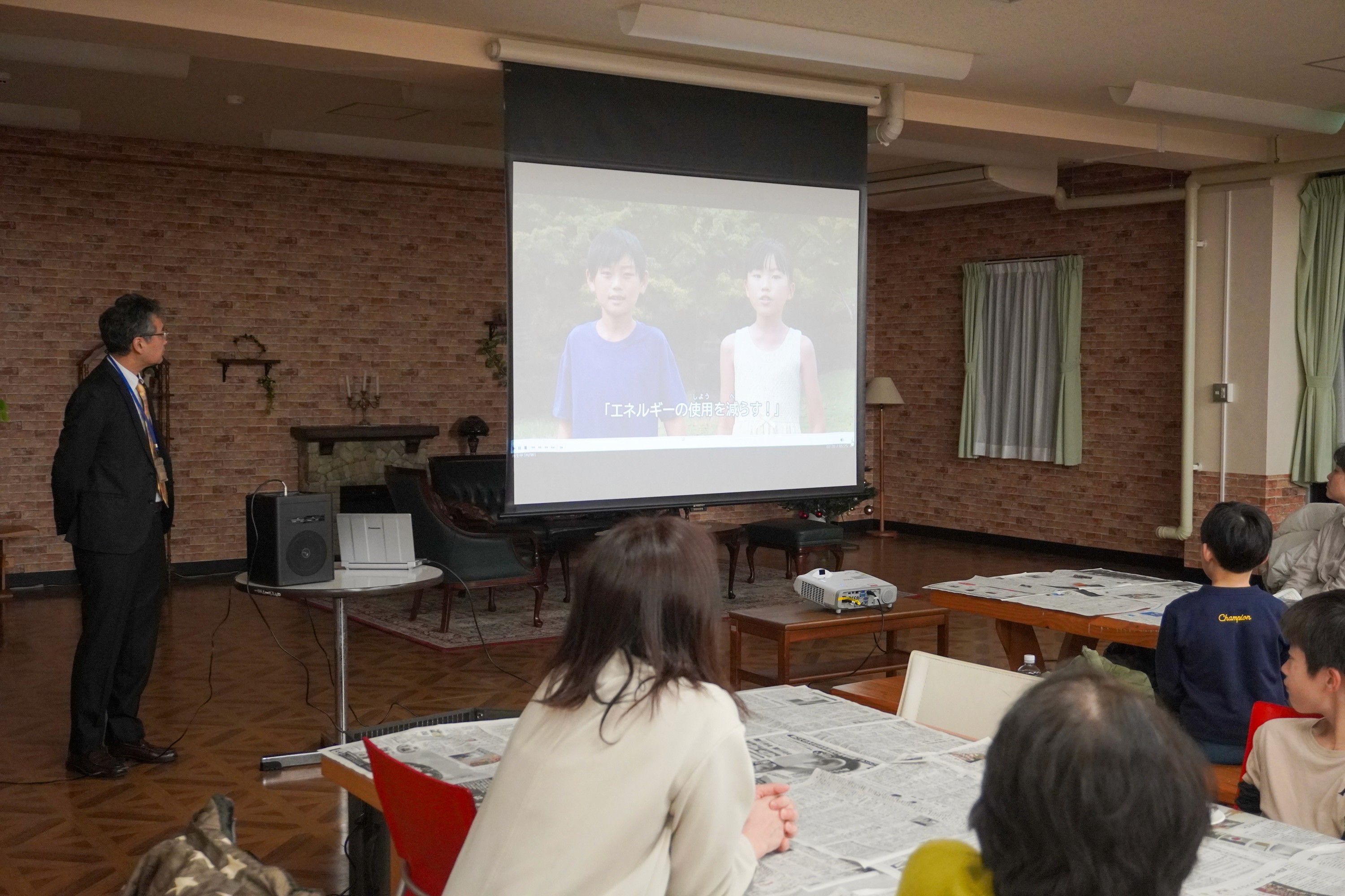イベントでは、京都市の方から再生可能エネルギーなどの解説や、三菱自動車工業株式会社の方から、電気自動車についての説明もしていただきました。