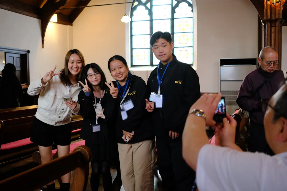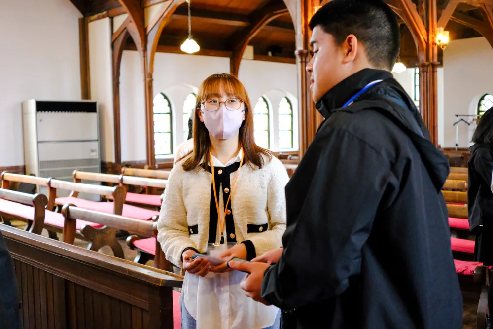 今回来校したのは、チェンマイのインターナショナルスクールや日本語コースを持つ高校に通う生徒たち。国際観光学部生と一緒に聖アグネス教会や授業を見学しました。