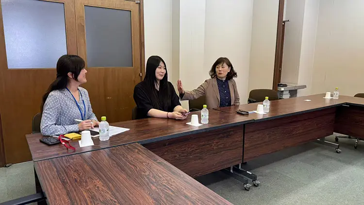 まず、毛利理事長が両学部の概要を子ども教育学部中心に紹介した後、両国の幼児教育の現状について意見交換をおこないました。その後向われた高槻キャンパスでは、在学中の編入留学生の劉星宏さんと学生部長の山田先生と懇談しました。